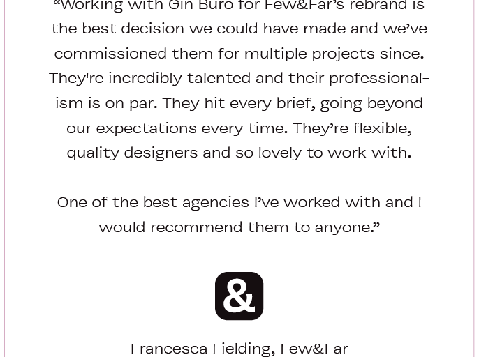 Working with Gin Buro for Few&Far’s rebrand is the best decision we could have made and we’ve commissioned them for multiple projects since.