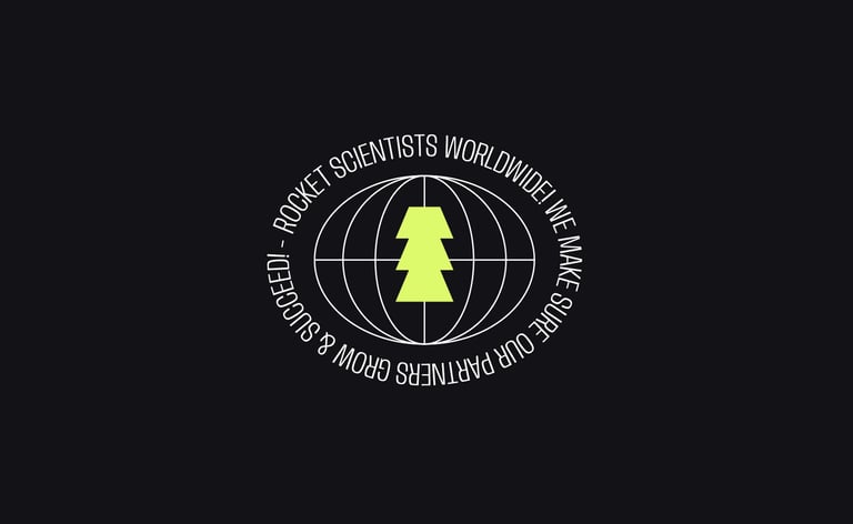 A concept based around the brands name. A symbol created for a team of Rocket Scientists researching growth through Design & Strategy. Takeoff is very near, are you ready to launch?!